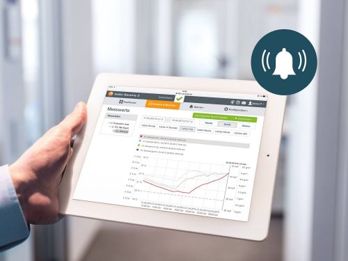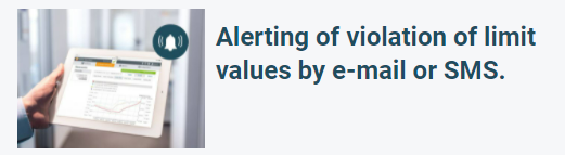 • Limit value violation alarms by push notification, e-mail or (optionally) SMS