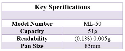 | Weighing resolution | 0.0001g | 0.001g | 0.002g | 0.005g |