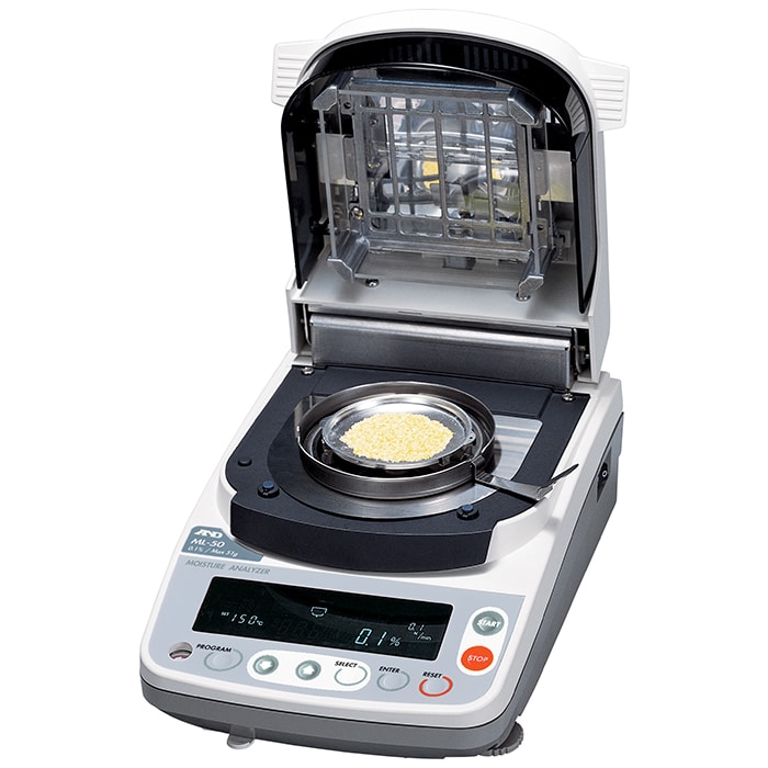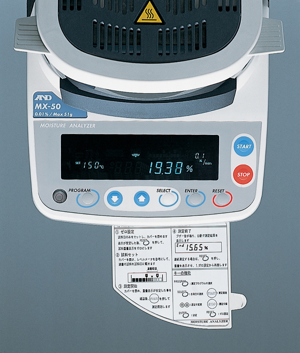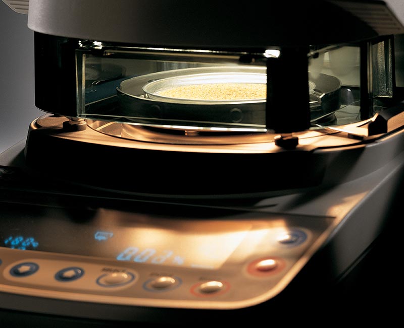 Our straight halogen lamp and uniquely designed SRA (Secondary Radiation Assist) filter gives shorter measurement time, thanks to fast and uniform heating. The ergonomically designed pan handle eliminates mishaps such as burns when moving a hot sample tray into or out of the unit from either side.