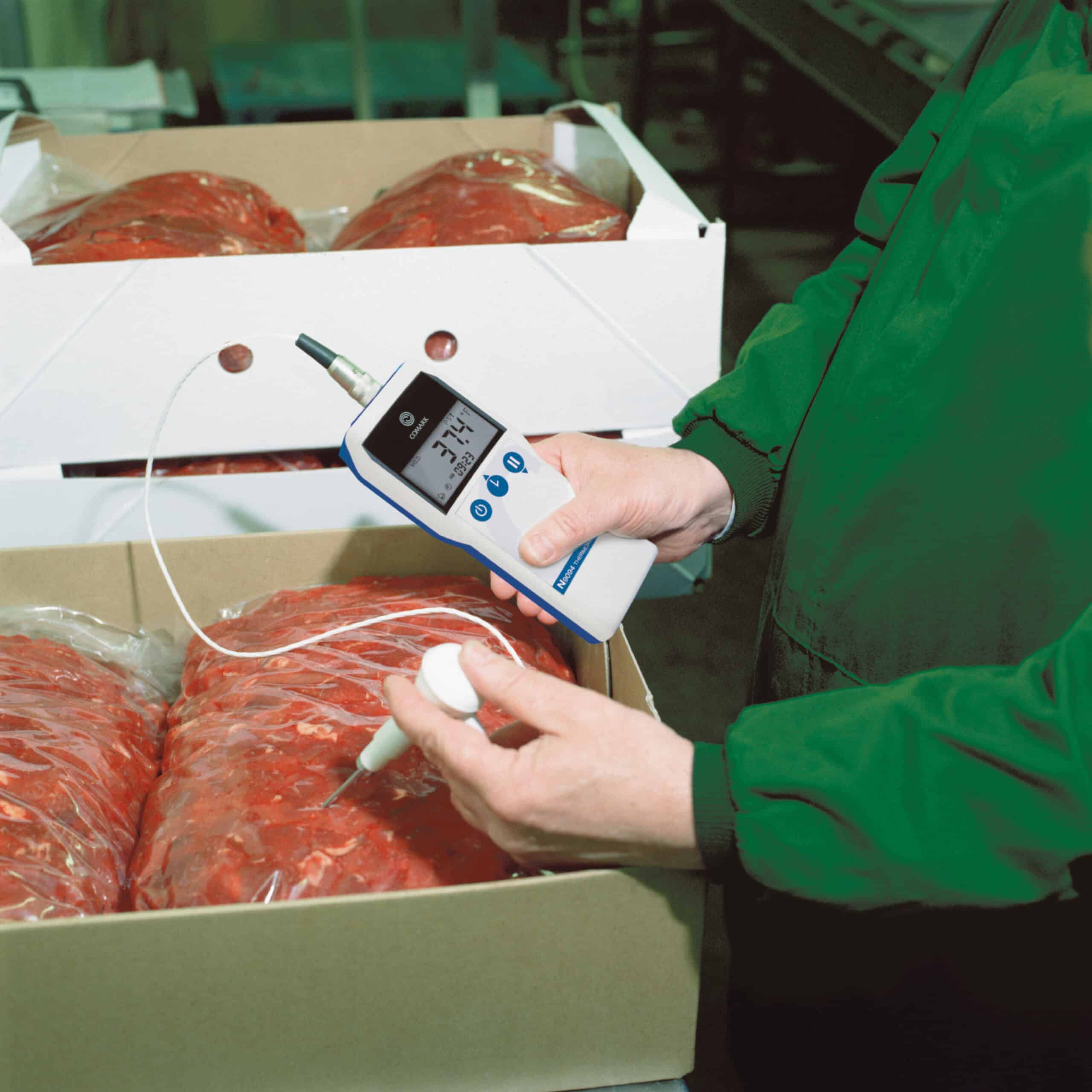 The N9094 Ultimate Food Thermometer is waterproof to IP68 standards and with secure Lumberg probe connection.  The N9094 Rugged Food Thermometer is suited to taking temperatures in busy, food production environments.
