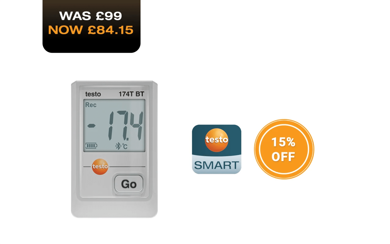 The testo 174 T BT mini data logger is ideal for professionals in the food and pharmaceutical industries who need to precisely monitor the storage conditions of their products. It reliably measures indoor temperatures in the measuring range -30 °C to +70 °C and offers simple and intuitive configuration and analysis of measurement data via the free testo Smart App.