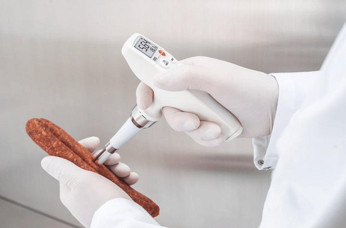 A robust food penetration pH/°C measuring instrument with automatic temperature compensation. The robust penetration measuring tip is interchangeable and not affected by dirt and dust thanks to the hole diaphragm.